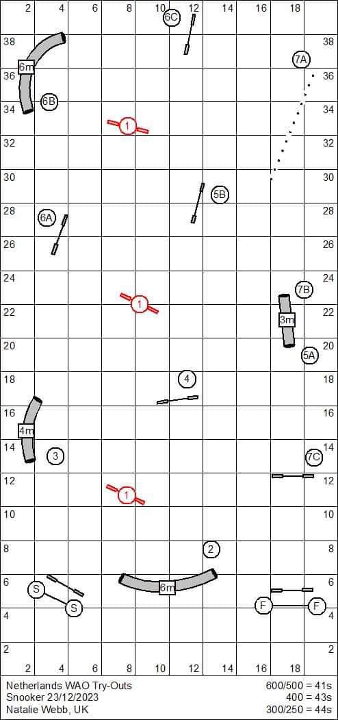 So I taught Juno a "look back!" cue. When sending her to an obstacle at 7m distance, I knew she'd turn to me after 3-4m. If figured, if I could train her to spin around 180 degrees the moment she'd turn to me,she'd then see the obstacle which was now within her reach at another 3m distance, allowing her to commit to it and continue the course.